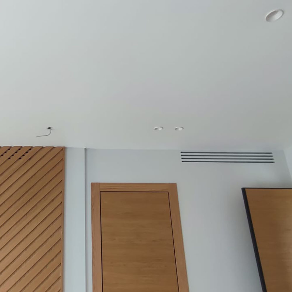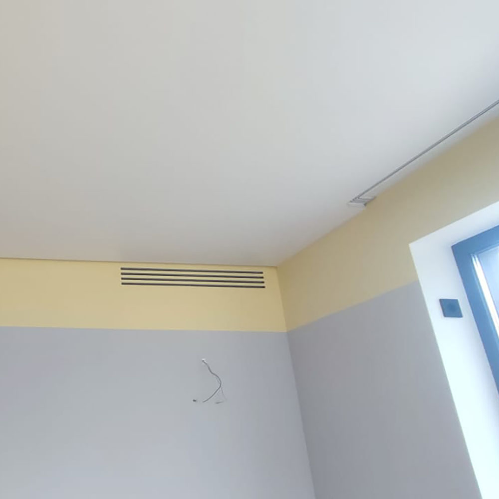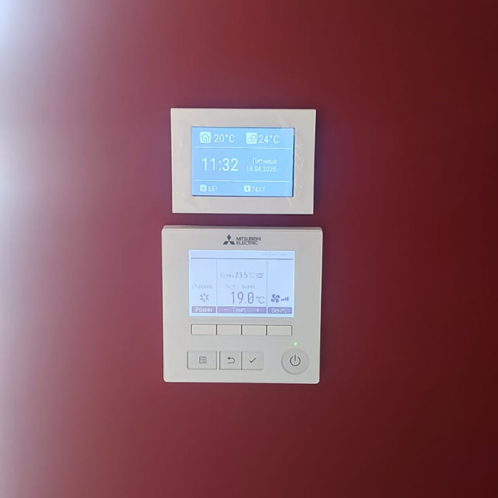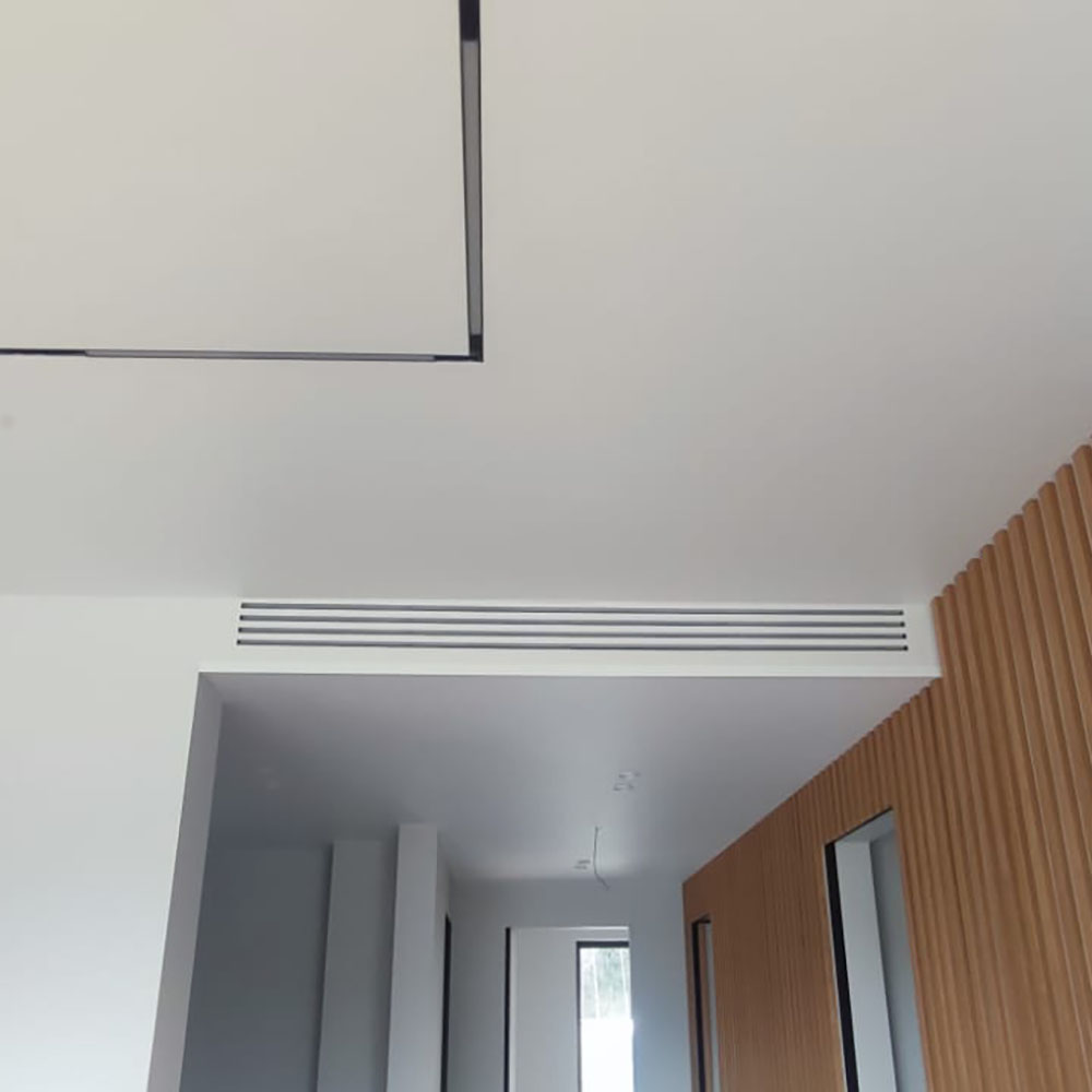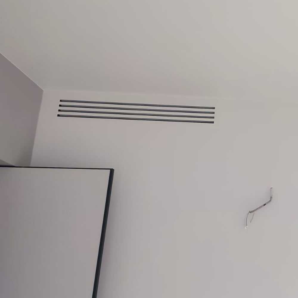 Выполнен профессиональный монтаж вентиляции Breezart и канальных кондиционеров Mitsubishi Electric в частном доме. Работы проводились на этапе строительства. Приточная установка Breezart размещена в техническом помещении и закреплена под потолком, выполнена разводка вентиляции жесткими воздуховодами для равномерного воздухообмена во всех помещениях дома. Канальные кондиционеры Mitsubishi Electric установлены в запотолочном пространстве с распределением охлажденного воздуха по жилым и техническим зонам. Управление вентиляцией Breezart и кондиционерами Mitsubishi Electric осуществляется с помощью настенных пультов управления. После завершения отделочных работ установлены декоративные вентиляционные решетки.