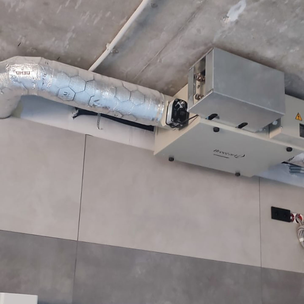 Наши работы> Монтаж приточной установки Бризарт и канальных кондиционеров Митсубиси Электрик в частном доме