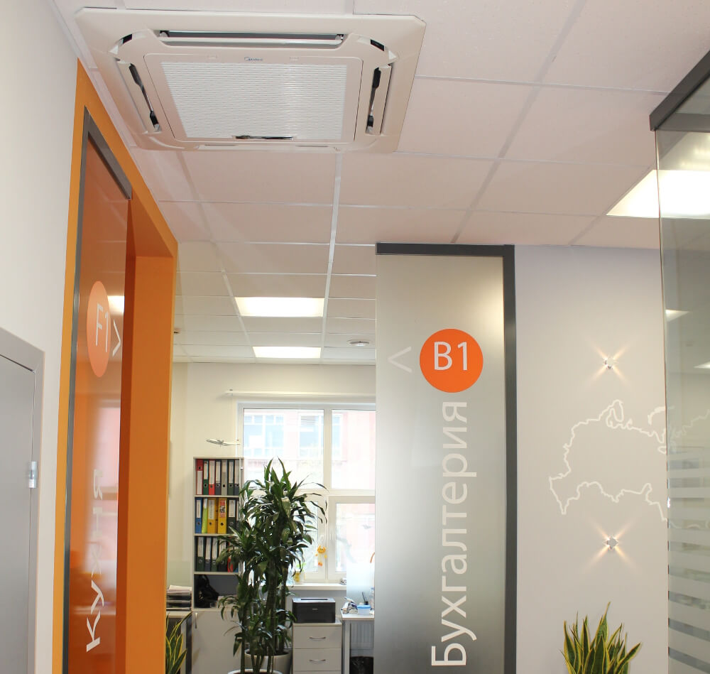 Для достижения цели были выбраны кассетные кондиционеры Midea. Их ключевые преимущества идеально подошли для проекта:
