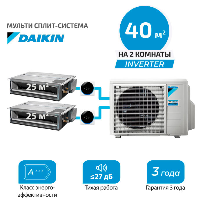 Мульти сплит система Daikin FDXM25F9x2/ 2MXM40A на 2 комнаты