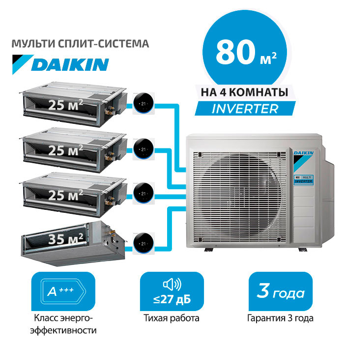 Мульти сплит система Daikin FDXM25F9x3 + FBA35A9/ 4MXM80A на 4 комнаты