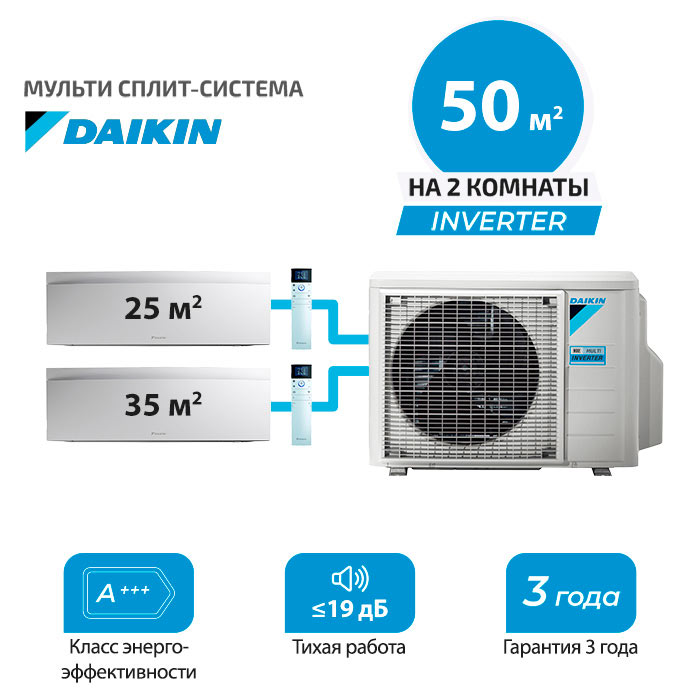 Мульти сплит система Daikin FTXJ25AW/S/B + FTXJ35AW/S/B/ 2MXM50A на 2 комнаты