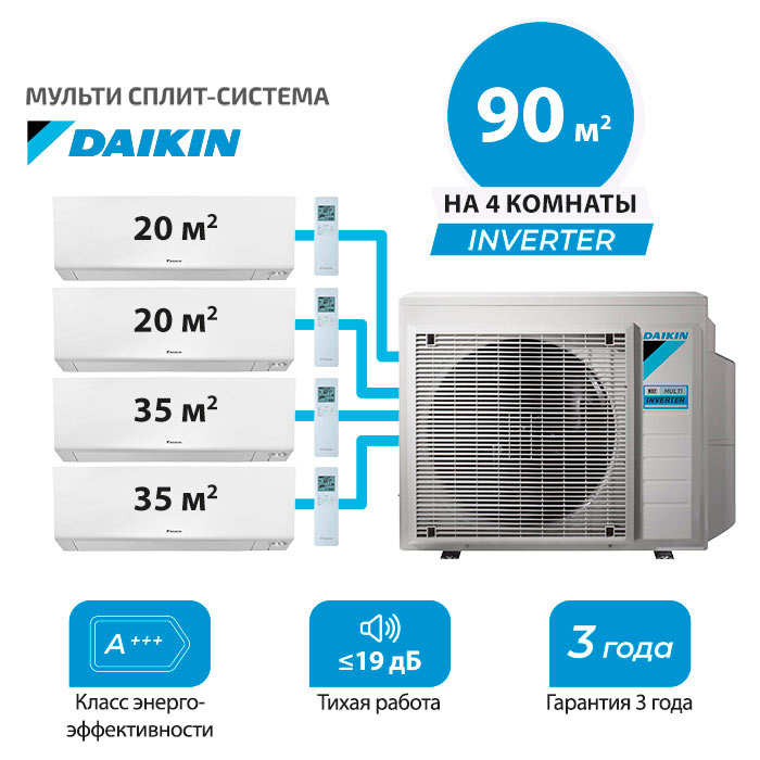 Мульти сплит система Daikin FTXM20Rx2 + FTXM35Rx2/ 5MXM90A на 4 комнаты
