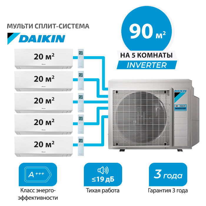 Мульти сплит система Daikin FTXM20Rx5/ 5MXM90A на 5 комнат