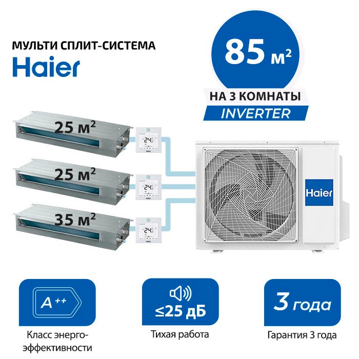 Мульти сплит система Haier AD25S2SS1FAx2 + AD35S2SS1FA/ 4U85S2SR5FA (комплект)
