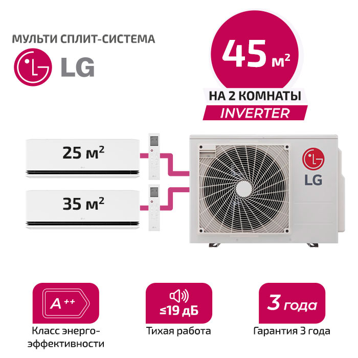 Мульти сплит система LG H09S1D.NS1R + H12S1D.NS1R/ MU2R17.U13 на 2 комнаты