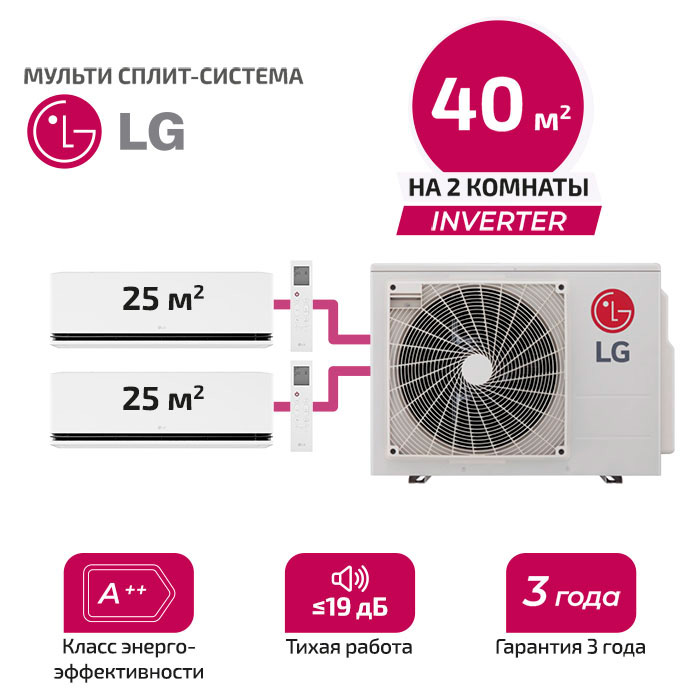 Мульти сплит система LG H09S1D.NS1Rx2/ MU2R15.U13 на 2 комнаты