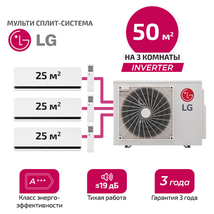 Мульти сплит система LG H09S1D.NS1Rx3/ MU3R19.U23 на 3 комнаты