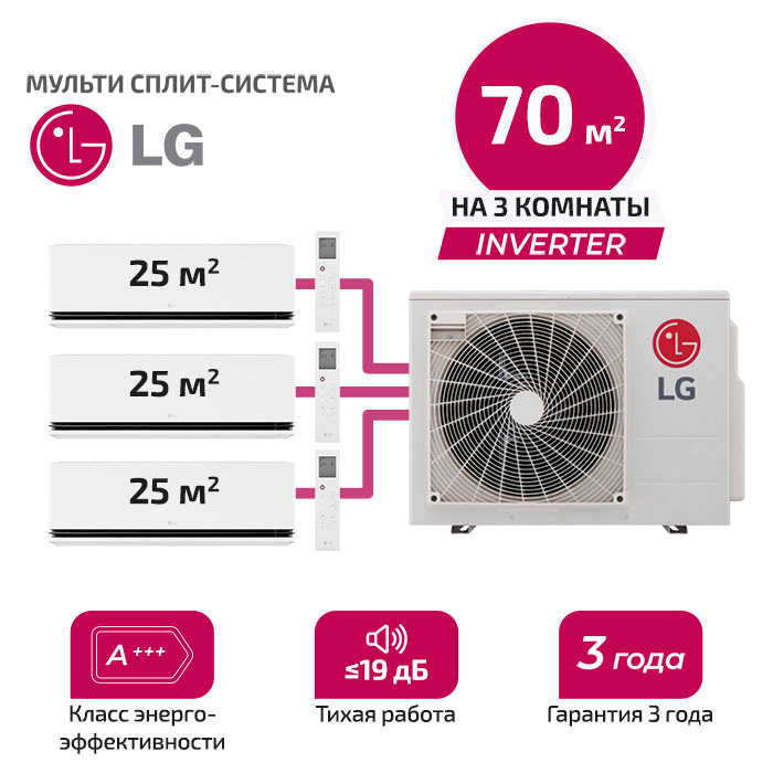 Мульти сплит система LG H09S1D.NS1Rx3/ MU4R25.U22 на 3 комнаты