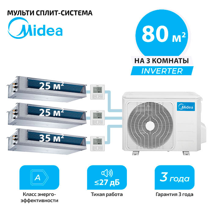 Мульти сплит система Toshiba MTIU-09W1NXD0Px2 + MTIU-12HW1FNXP(GA)/ M3OA-27HFN8-Q1 на 3 комнаты