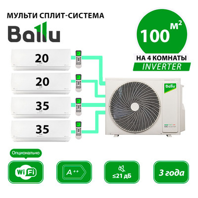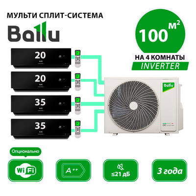 Наружные блоки мультисплит-систем Ballu обеспечивают эффективное охлаждение и обогрев 4-х помещений, подключая разные типы внутренних модулей к одному источнику. Инверторная технология, экологичный хладагент R32 и высокий класс энергоэффективности гарантируют экономичную работу и комфорт в любое время года.