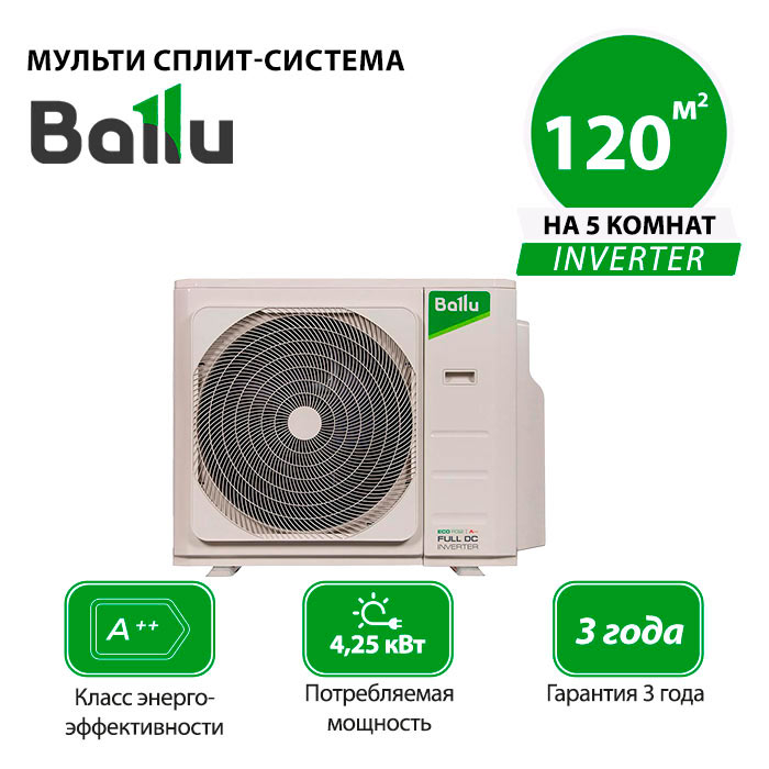 Наружные блоки мультисплит-систем Ballu обеспечивают эффективное охлаждение и обогрев 5-ти помещений, подключая разные типы внутренних модулей к одному источнику. Инверторная технология, экологичный хладагент R32 и высокий класс энергоэффективности гарантируют экономичную работу и комфорт в любое время года.
