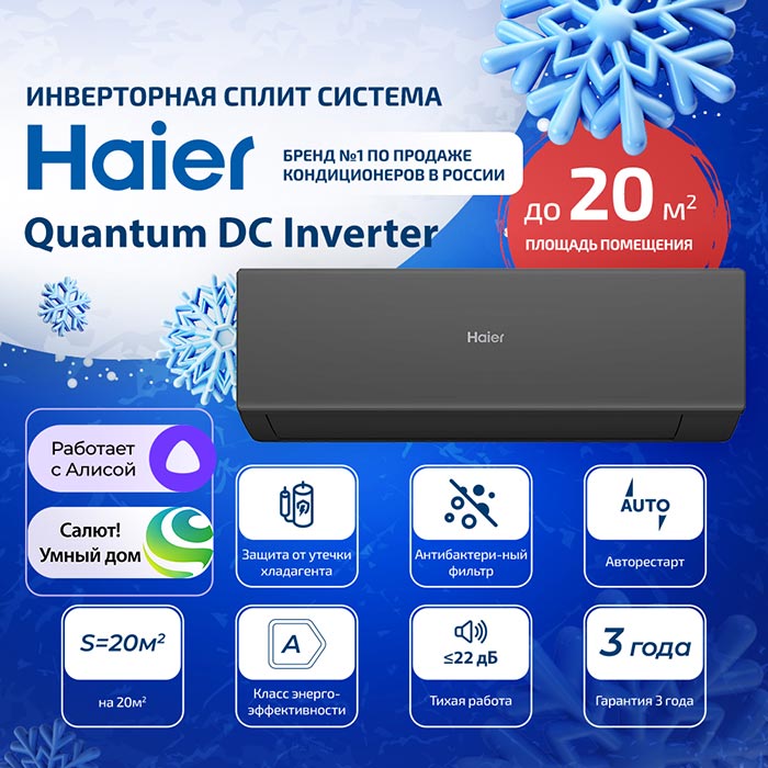 Кондиционер Haier Quantum DC Inverter AS20HQJ2HRA-B/ 1U20HQJ2FRA