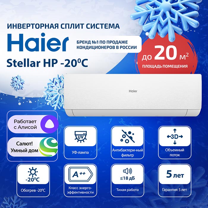 Кондиционер Haier Stellar HP AS20SHP2HRA-W/ 1U20SHP2FRA