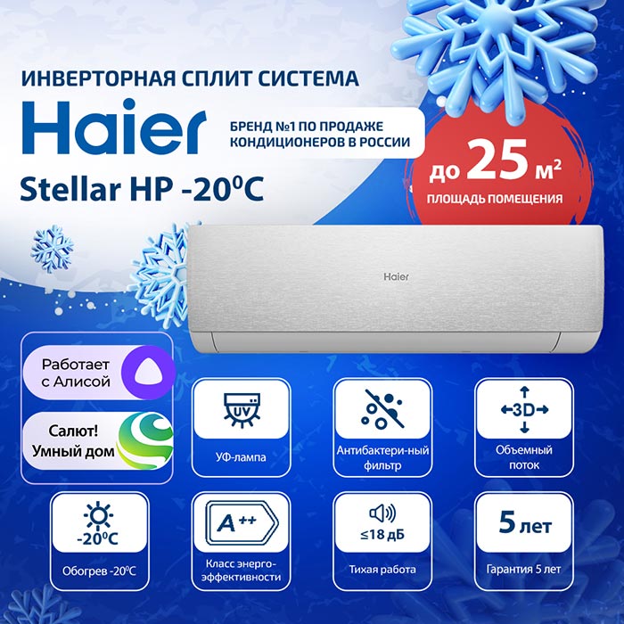 Кондиционер Haier Stellar HP AS25SHP2HRA-S/ 1U25SHP2FRA серебристый