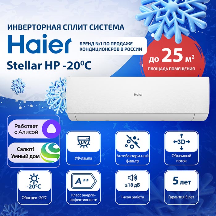 Кондиционер Haier Stellar HP AS25SHP2HRA-W/ 1U25SHP2FRA