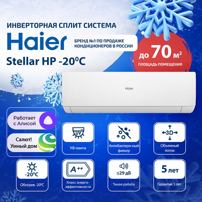 Кондиционер Haier Stellar HP AS70SHP2HRA-W/ 1U70SHP2FRA